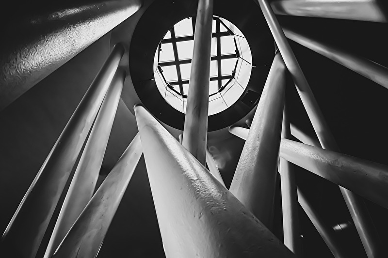 Der Hauptbahnhof in Wuppertal ist echt nix besonderes. Aber einzelne Hingucker, wie hier die Stahlträger mit Blick zum Dachfenster, lohnen schon, fotografiert zu werden.