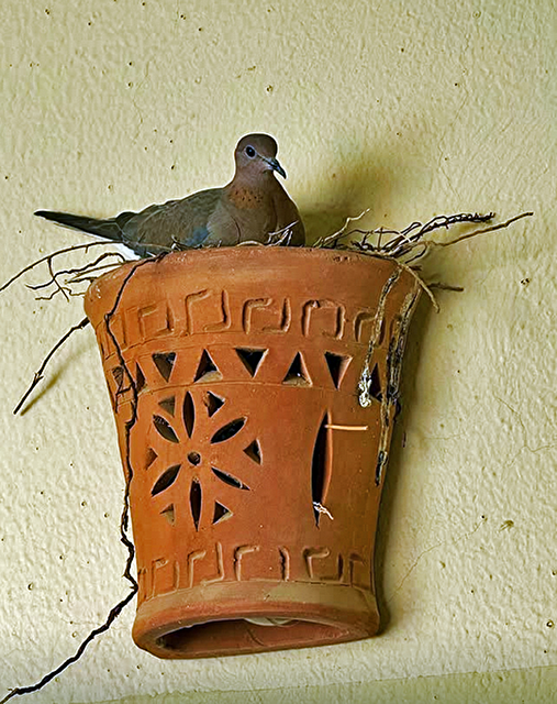 in dekorativen Tontopf an einer Wand brütent